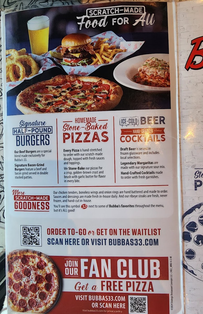 Welcome to Bubba's 33 in Roanoke, where comfort food meets a vibrant atmosphere. Nestled at 4824 Valley View Blvd NW, this venue is perfect for gathering with friends or family. The menu offers an impressive range of starters such as Crooked Fried Cheese and Poblano Spinach Dip, enticing patrons to kick off their dining experience with a flavorful touch.